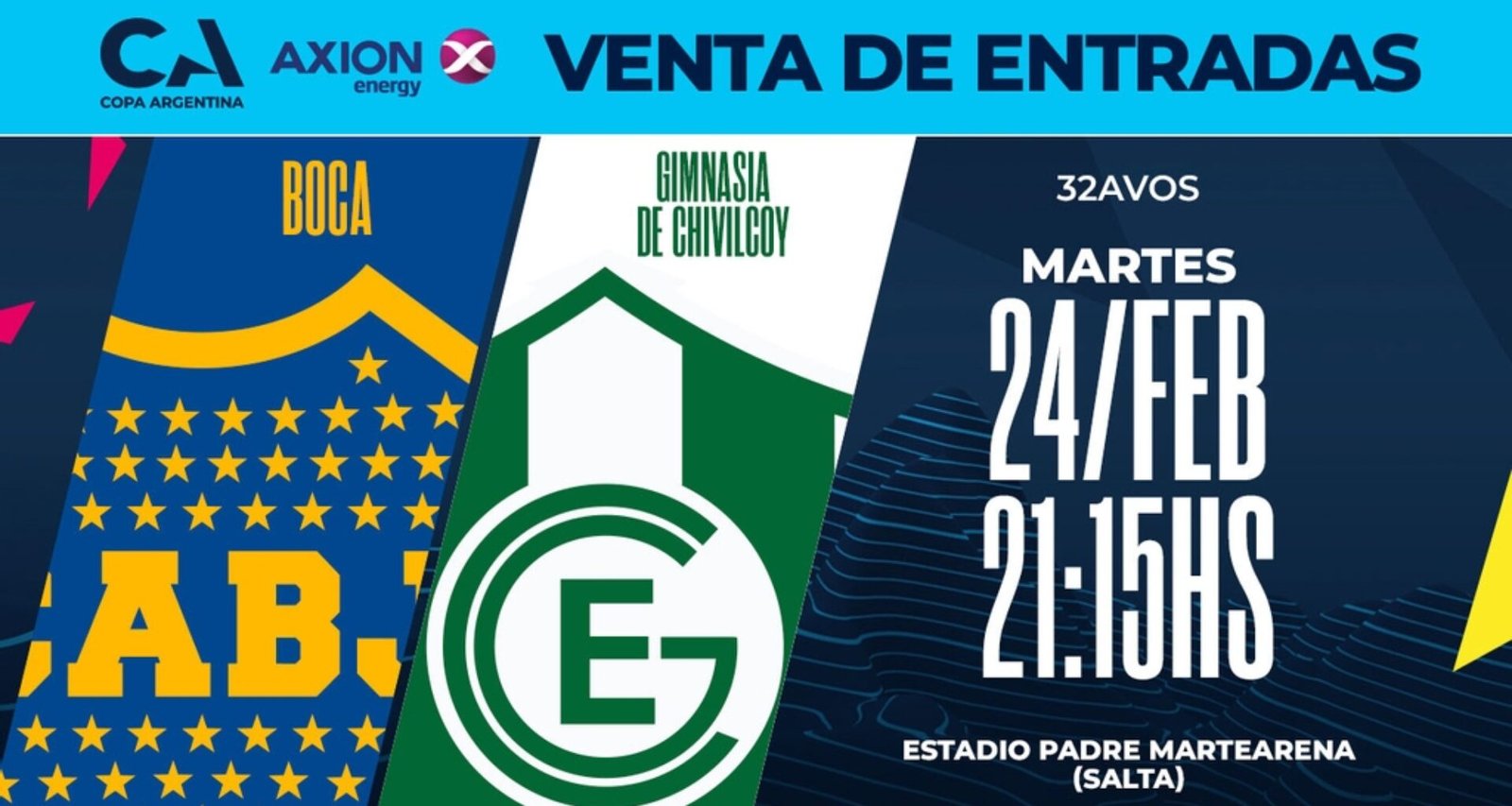 El cruce entre Boca y Gimnasia de Chivilcoy ya tiene todo definido para el expendio de localidades. El encuentro se disputará el Martes 24 de Febrero, desde las 21.15, en el estadio Estadio Padre Ernesto Martearena, por los 32avos de Final. A continuación, todos los detalles para ambas parcialidades.